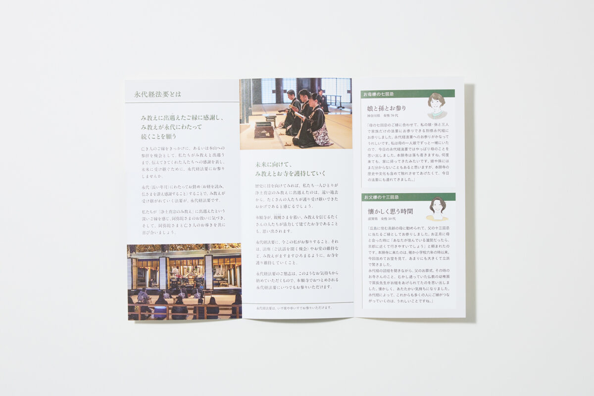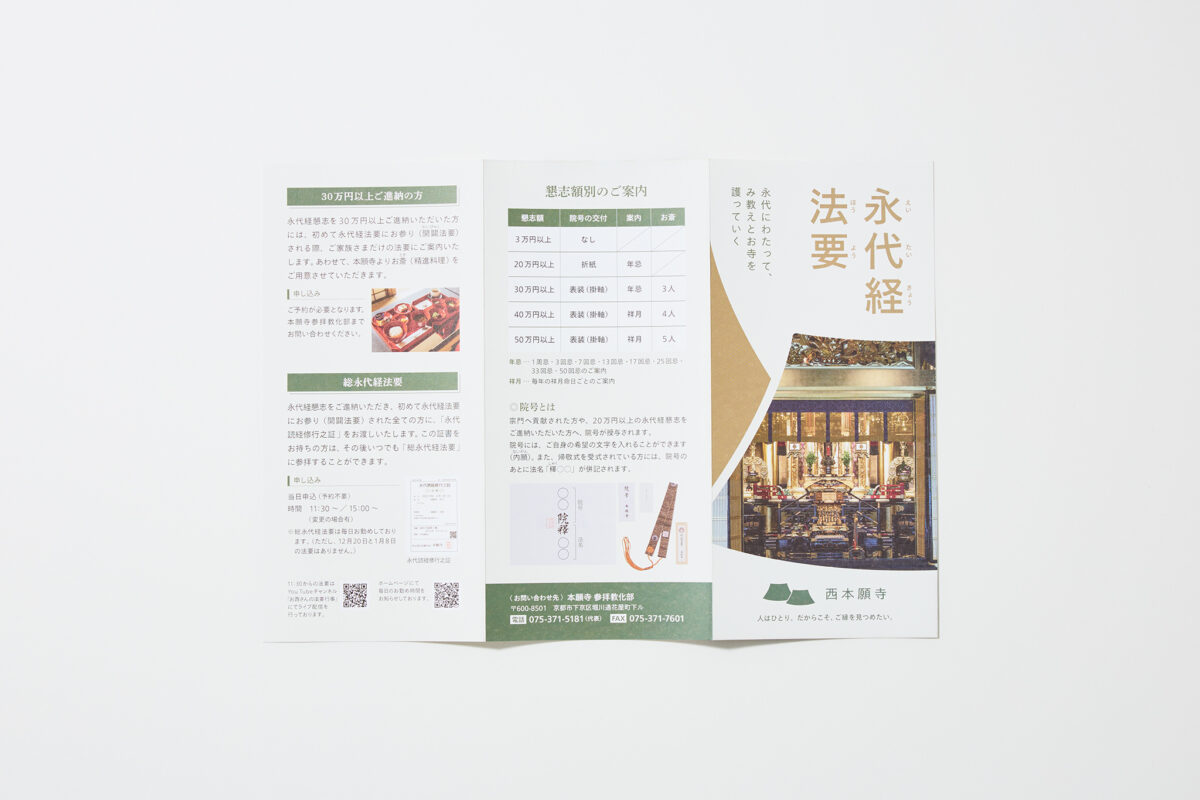 西本願寺 永代経法要 パンフレットデザイン グラフィックデザイン Pamphlet / パンフレット・カタログ 京都 Share :シェアクリックして Twitter で共有 (新しいウィンドウで開きます)Facebook で共有するにはクリックしてください (新しいウィンドウで開きます)クリックして Pinterest で共有 (新しいウィンドウで開きます)